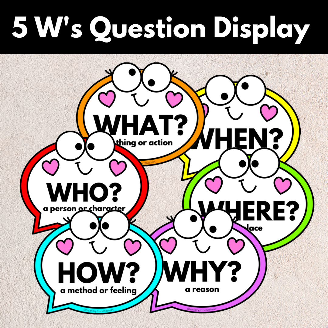 What is included: Visual display for the questions Who?, What?, When?, Where?, Why?, AND How?