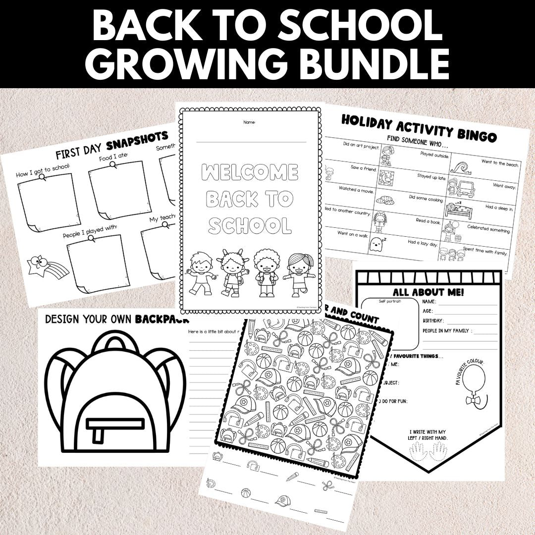 Some of the vast ranges of activities include 'all about me' bunting design your own playground, find-a-words (including one where students can add their classmates names), acrostic poems, reflections from the first day of school, goal setting template and so much more!