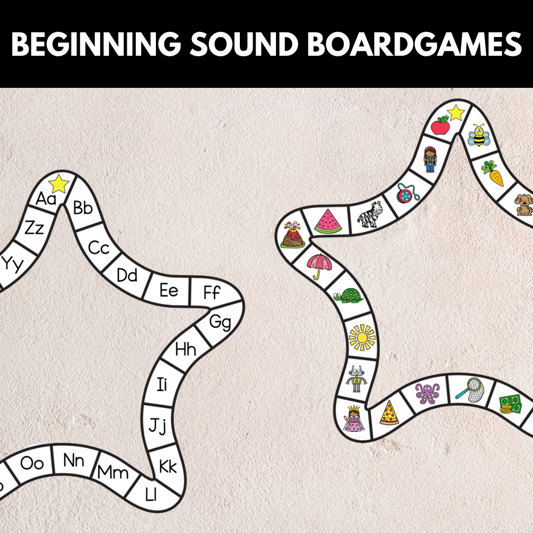 Use these two beginning sound boardgames. These fun and educational beginning sound board games are perfect for young learners. These games are designed to help children practice and master initial phonetic sounds through engaging and interactive play. Ideal for parents and teachers looking to enhance early literacy skills in a playful manner.