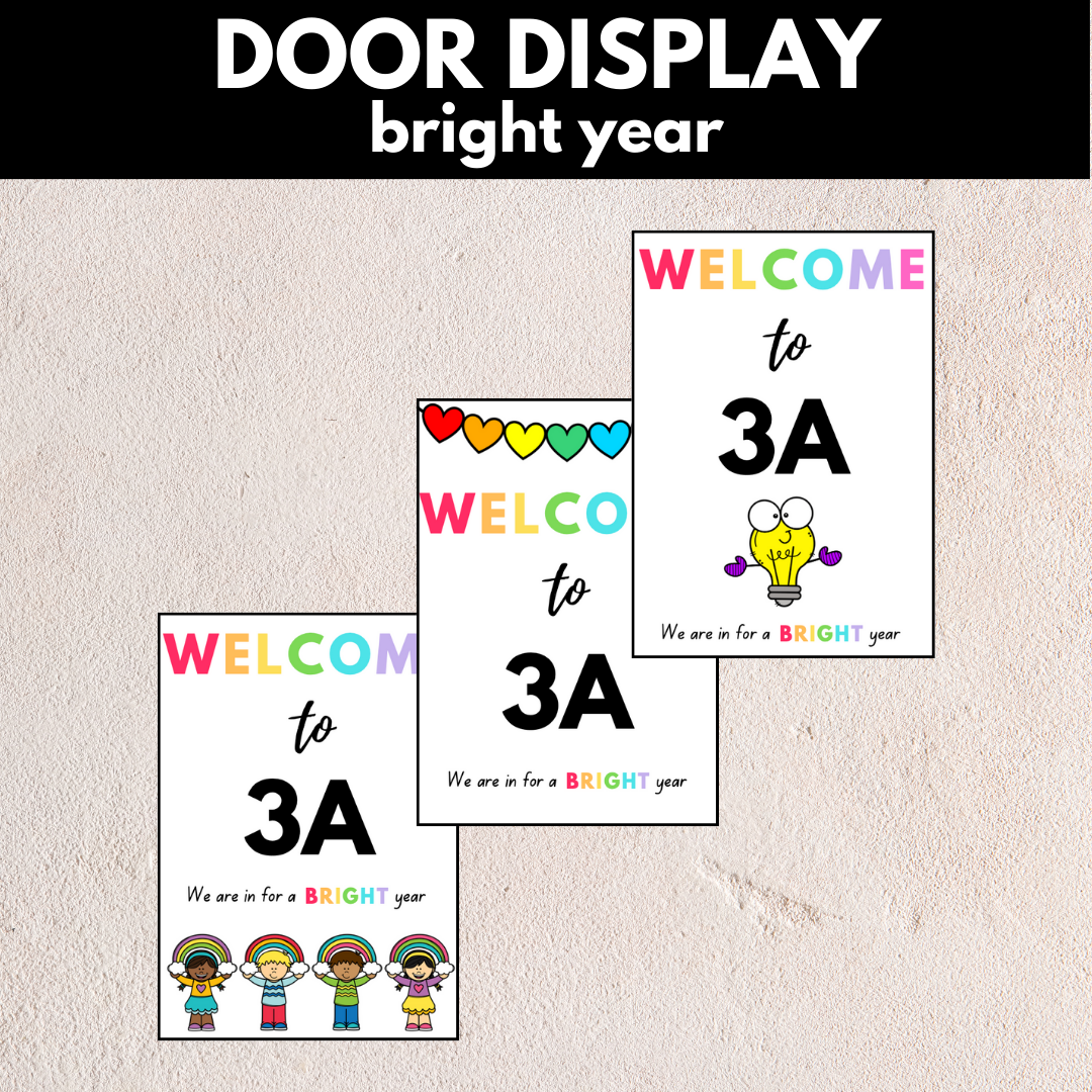 Create a vibrant environment before anyone even steps foot into your classroom with these 'Bright Year' door display posters. They are all editable so you can add your class/room name
