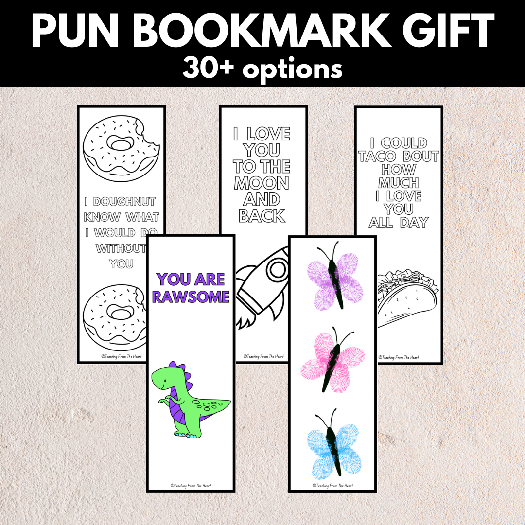 These punny bookmarks have no specific noun on them making them a perfect gift for any relationship children may have with their loved one/s including mum, dad, carer, teacher, grandparent, or a friend.