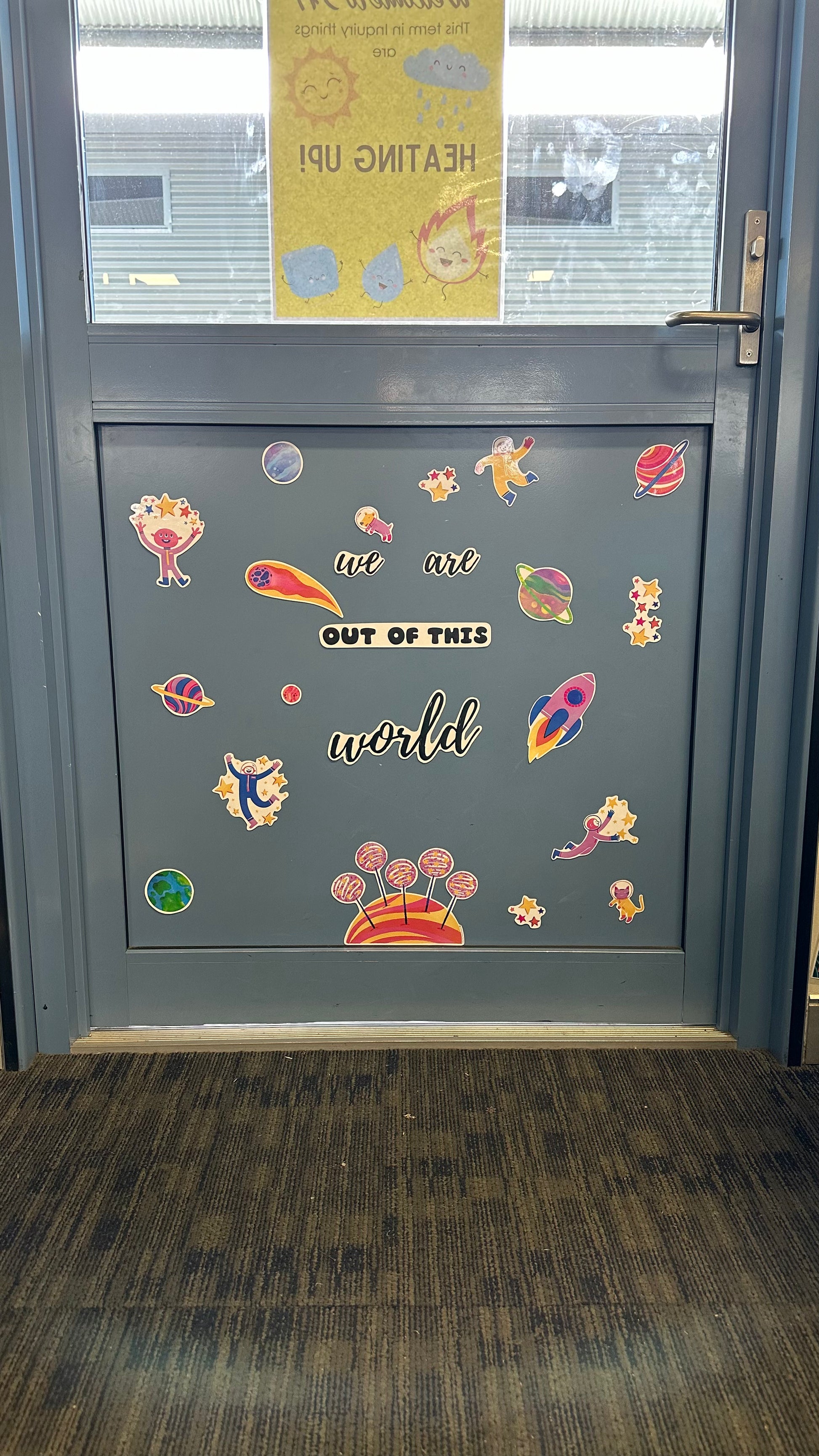 Featuring an array of human and animal astronauts, sleek spacecrafts, twinkling stars, and captivating planets, this display is designed to spark curiosity and imagination. The words "We Are Out of This World" encourage students to reach for the stars and celebrate their unique potential. Perfect for creating an inspiring and engaging learning environment.