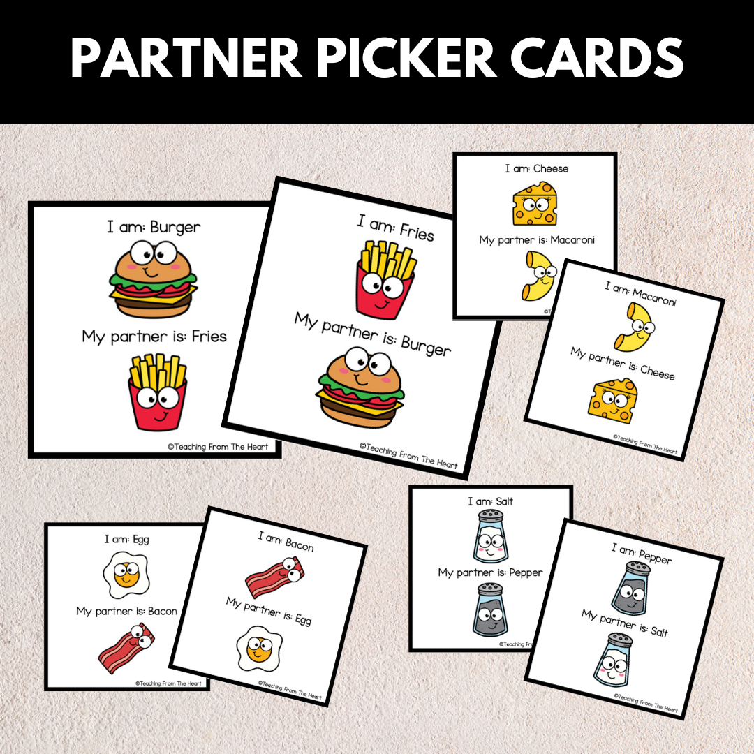 With 20 pairs to choose from (accomodating for 40 students), these partner picker cards are perfect for randomising partners in class in a fun way!