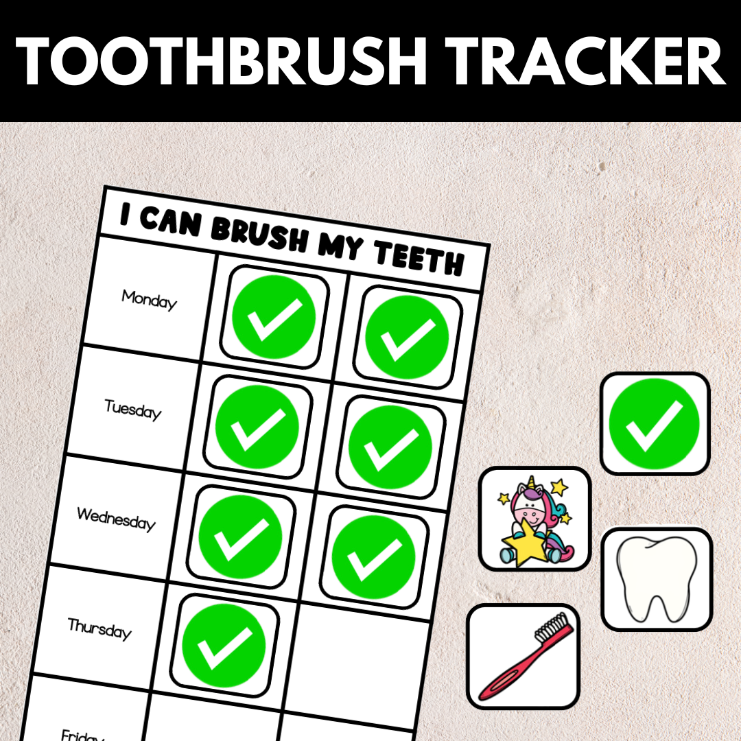 What is included: Monday to Sunday chart with spaces for 2 tokens next to each day of the week. 4 types of 'tokens'. Kiddos can choose to use the green tick tokens, toothbrush tokens, tooth tokens or unicorn with stars token.
